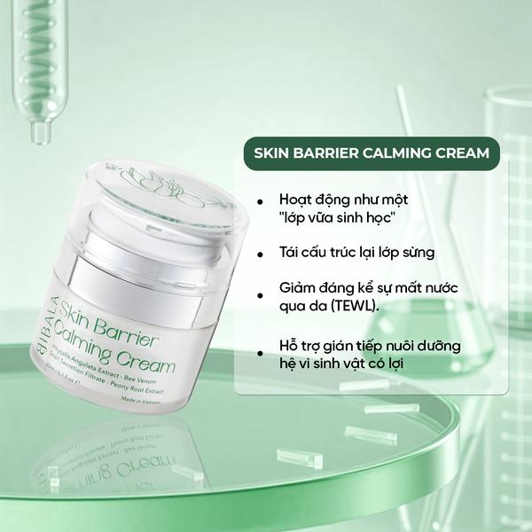 - Hành động: Sử dụng Skin Barrier Calming Cream làm bước khóa ẩm chiến lược. Sản phẩm này hoạt động như một "lớp vữa sinh học", cung cấp phức hợp lipid và ceramide theo tỷ lệ mô phỏng lớp màng lipid tự nhiên của da. Điều này giúp tái cấu trúc lại cấu trúc phiến của lớp sừng, hàn gắn các "lỗ hổng", từ đó giảm đáng kể sự mất nước qua da (TEWL).