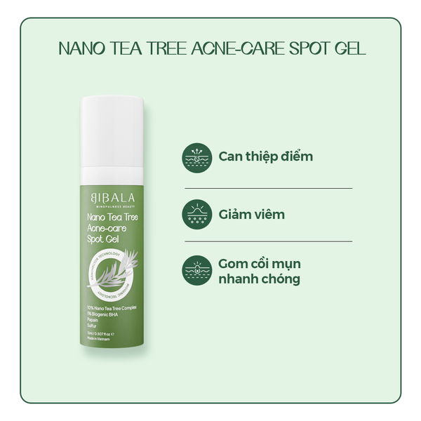 - Nano Tea Tree Acne-Care Spot Gel: Can thiệp điểm, giảm viêm và gom cồi mụn nhanh chóng.