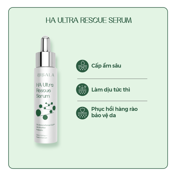 - HA Ultra Rescue Serum: Cấp ẩm sâu, làm dịu tức thì và phục hồi hàng rào bảo vệ da (HA Ultra Filler, AnnonaSense CLR™, Prebiotic).