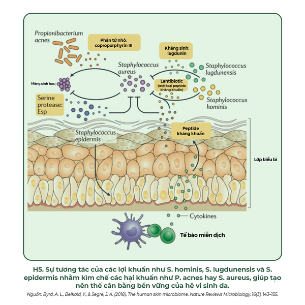 Trên một làn da khỏe mạnh, hệ vi sinh ở trạng thái cân bằng (eubiosis), với các vi khuẩn có lợi chiếm ưu thế, giúp duy trì độ pH acid và sản sinh các peptide kháng khuẩn (Antimicrobial Peptides - AMP) để ức chế mầm bệnh. Tuy nhiên, khi hàng rào bảo vệ suy yếu, sự cân bằng này bị phá vỡ, dẫn đến tình trạng loạn khuẩn (dysbiosis).