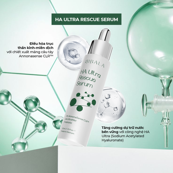 Việc phục hồi trục Thần kinh - Miễn dịch - Vi sinh vật là giải pháp khoa học toàn diện để giải quyết tận gốc tình trạng da nhạy cảm, dễ kích ứng. Thay vì chỉ xử lý triệu chứng bề mặt, cách tiếp cận này giúp tái lập lại trạng thái cân bằng sinh lý tự nhiên của da. Bộ đôi HA Ultra Rescue Serum và Skin Barrier Calming Cream của Bibala chúng mình đã tận dụng tối ưu cơ chế này, với các hoạt chất tiên tiến như AnnonaSense CLR™ giúp điều hòa thần kinh và phức hợp lipid sinh học giúp tái tạo hàng rào bảo vệ, mang lại hiệu quả làm dịu, phục hồi và củng cố sức khỏe làn da một cách bền vững.